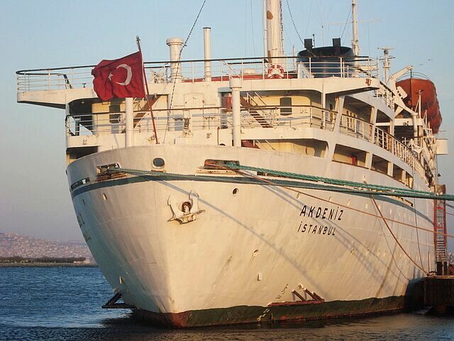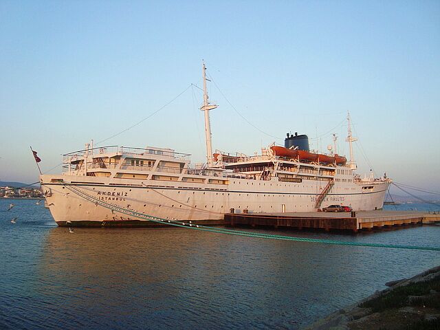 Akdeniz is seen here berthed as a student accommodation vessel and is currently