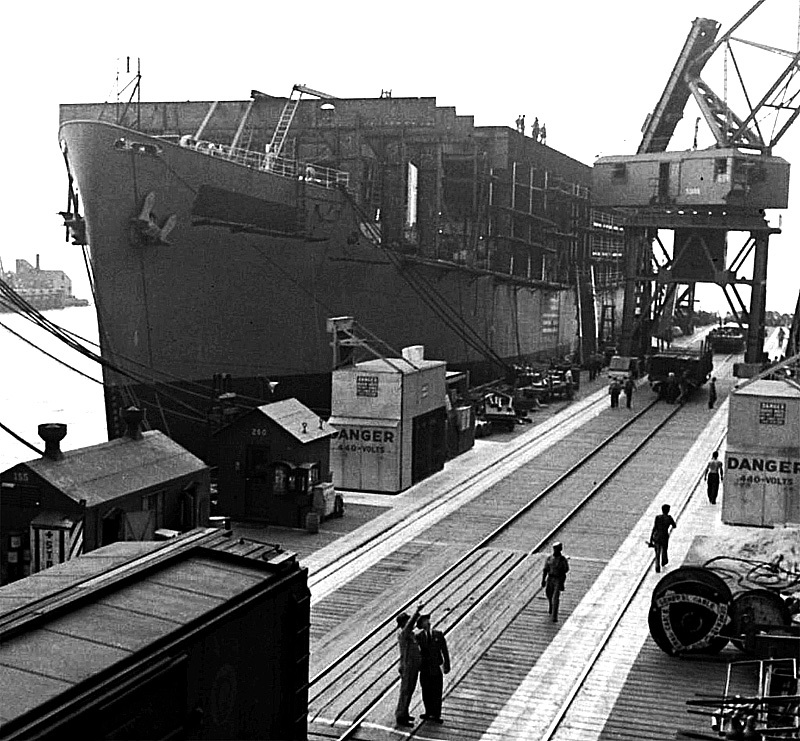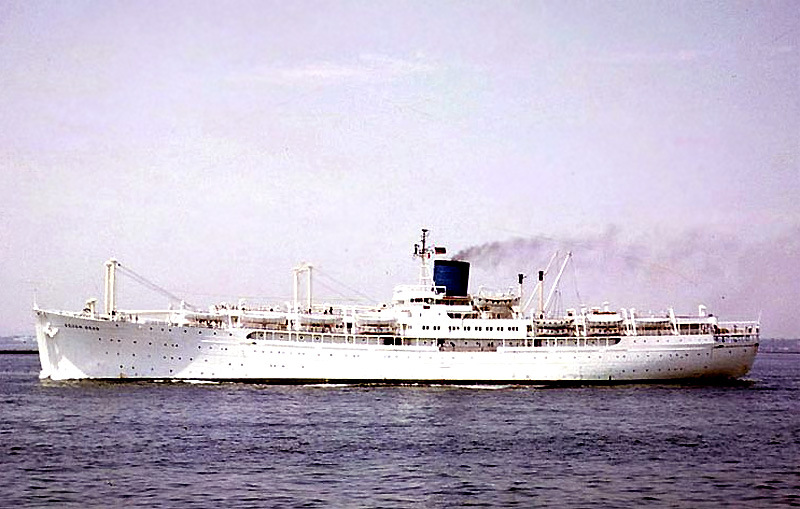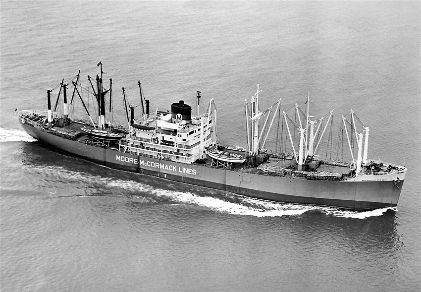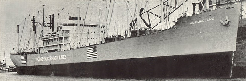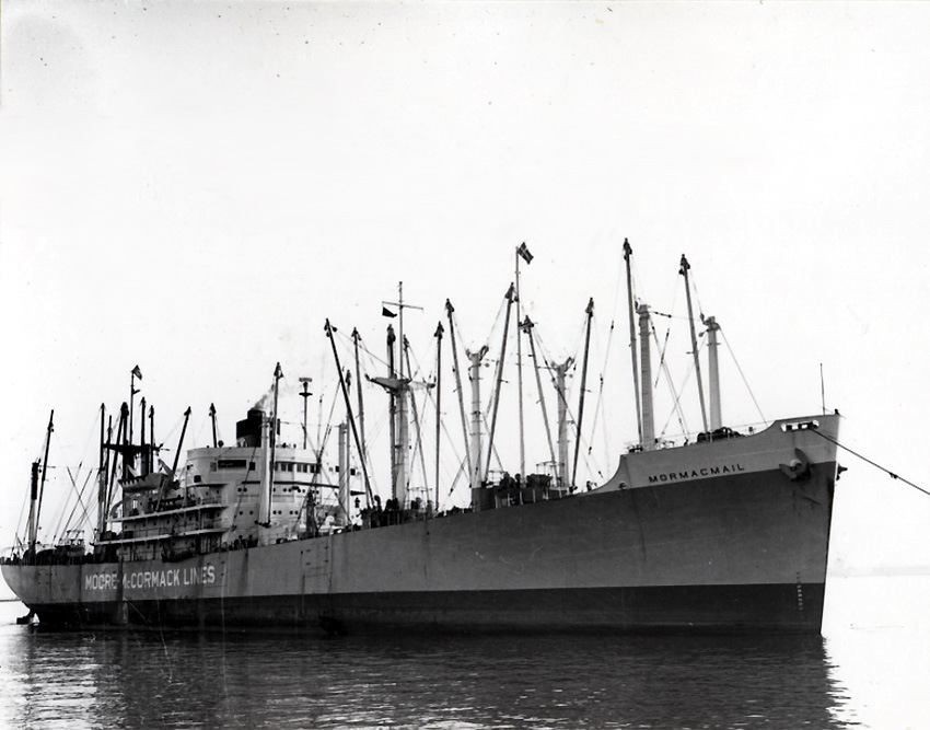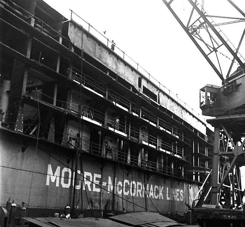 Above: We see her original hull with the “Moore-McCormack Lines” markings