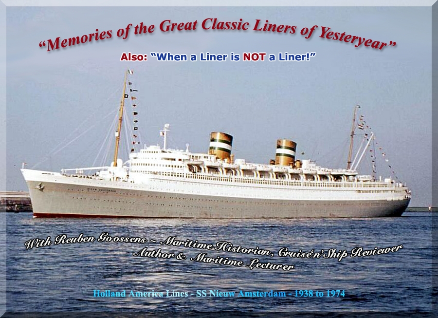 I have been asked, “But Reuben, what is the difference between all those great classic liners you rave about and these luxurious cruise ships? You have to admit that the ships to day are by far more comfortable with superior cabins and facilities than on those ships you are speaking about.”