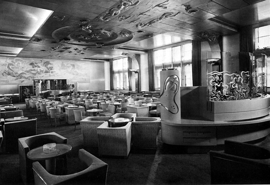 The Main Foyer was dramatic and certainly inspired by Art deco, the ship