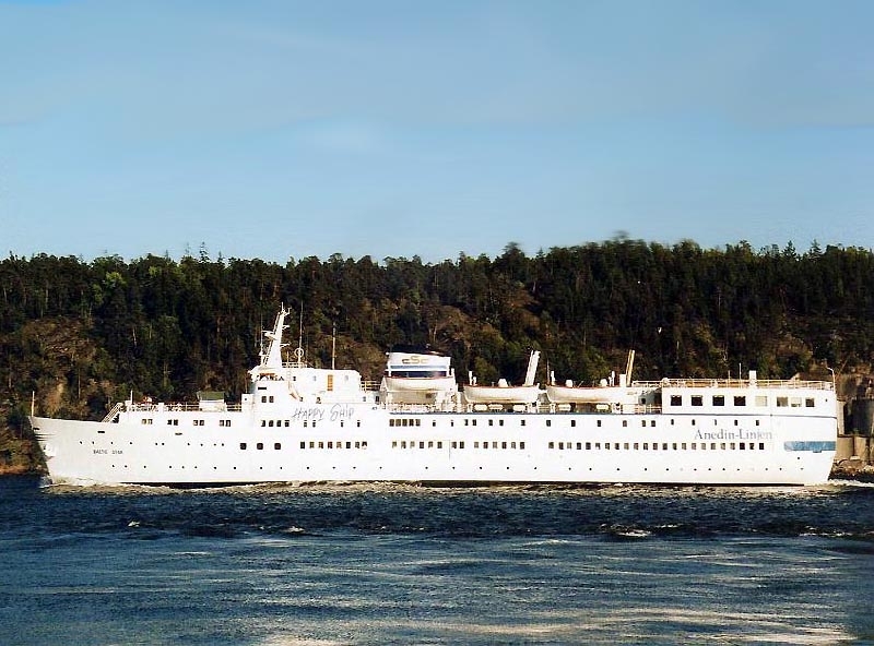 She continued her services and became known as the “Happy Ship” and these words were pained on the sides of the ship, as can be seen above. Although in the late 1980s the Ånedin Line was aquired by Sally Line, but after Sally’s demise, Ånedin Line was taken over by Effjohn International, being the parent company of Silja Lime.