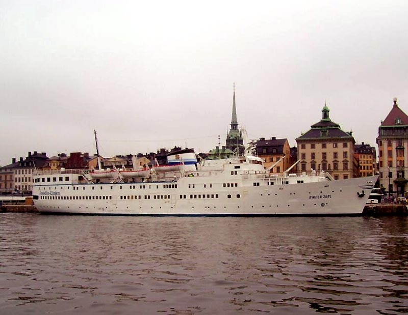 Seen in 2004, is a rather good looking 51 year MV Birger Jarl as she returns to port