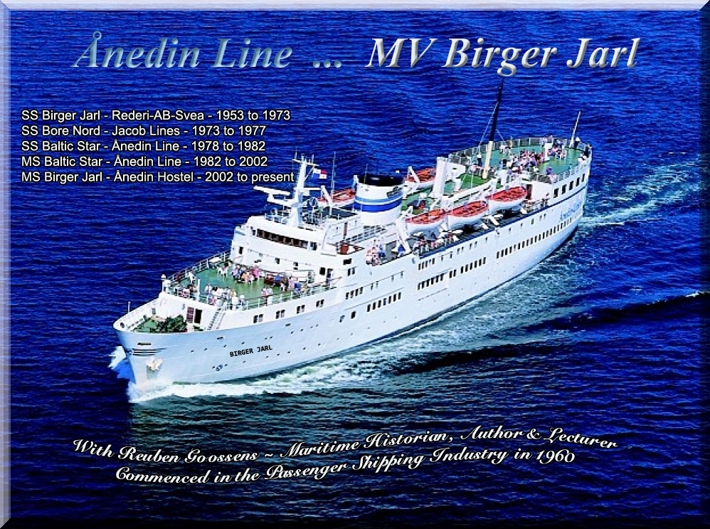 SS Birger Jarl 1953, SS Bore Nord 1973, SS Baltic Star 1978, MS Baltic Star 1982, MV Birger Jarl 2000