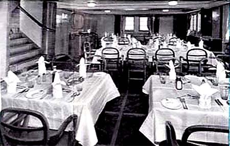 First Saloon accommodated 21 passengers in single and two berth cabins, all having windows, comfortably furnished and with running hot and cold water.