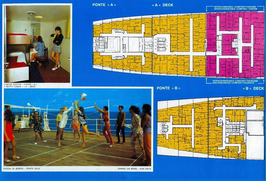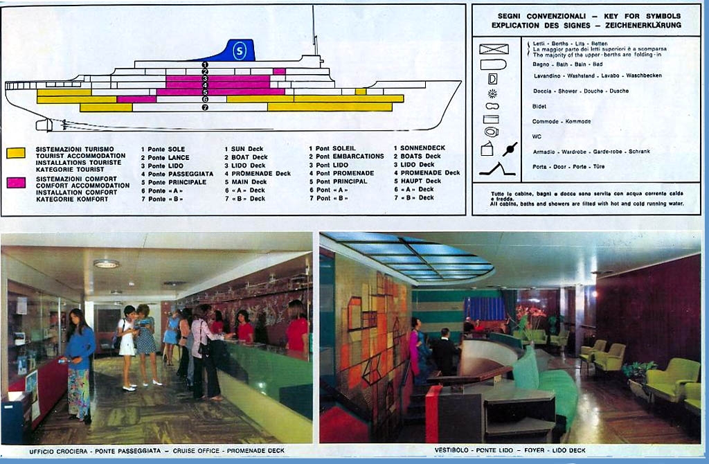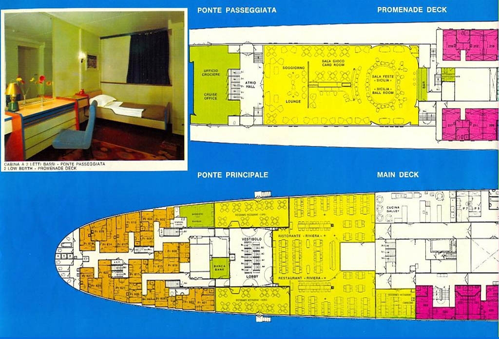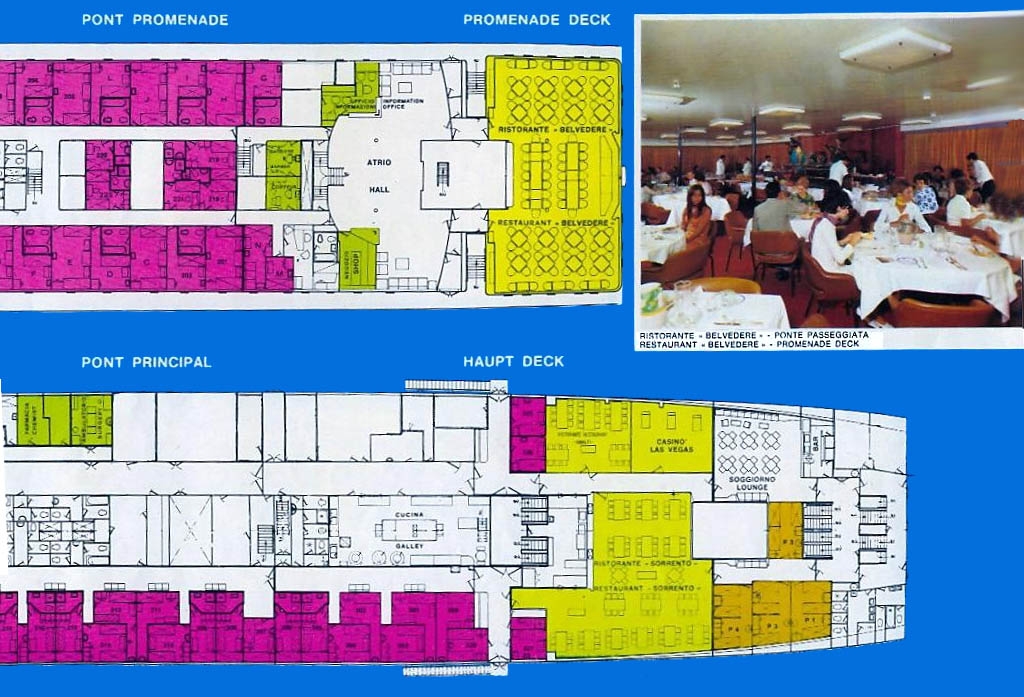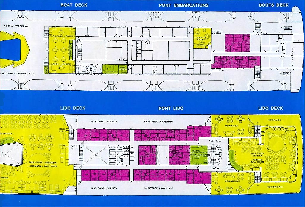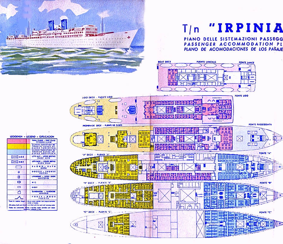 T/v Irpinia 1955 Deck Plan; Note there were only 8 public venues on the ship at that time