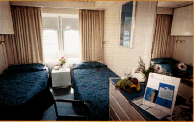 A typical outside twin bedded cabin that converts to a double-bedded room