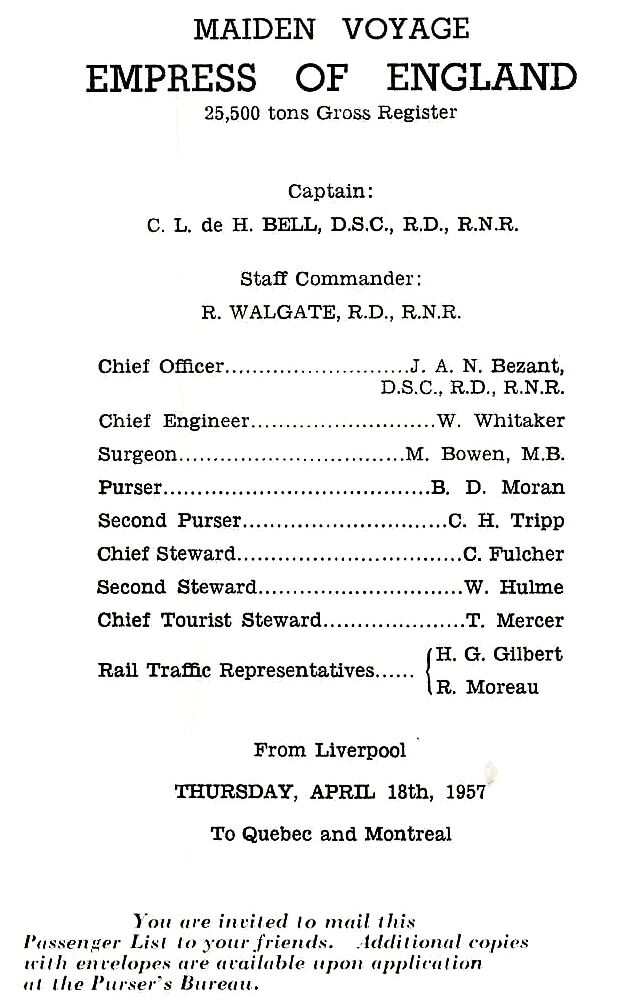 fine Canadian Pacific liner, the RMS Empress of England, whilst Pages