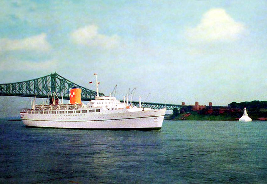 Empress of Canada, the third ship and much newer ship was built in 1960 the 27,284 ton RMS Empress of Canada was launched and she commenced her maiden voyage to Canada fro Liverpool on April 24, 1961. However, she was far a more modern and distinct looking liner, having a distinctive top to her funnel as well as a more built up superstructure, especially the forward section being more pronounced and bulky.