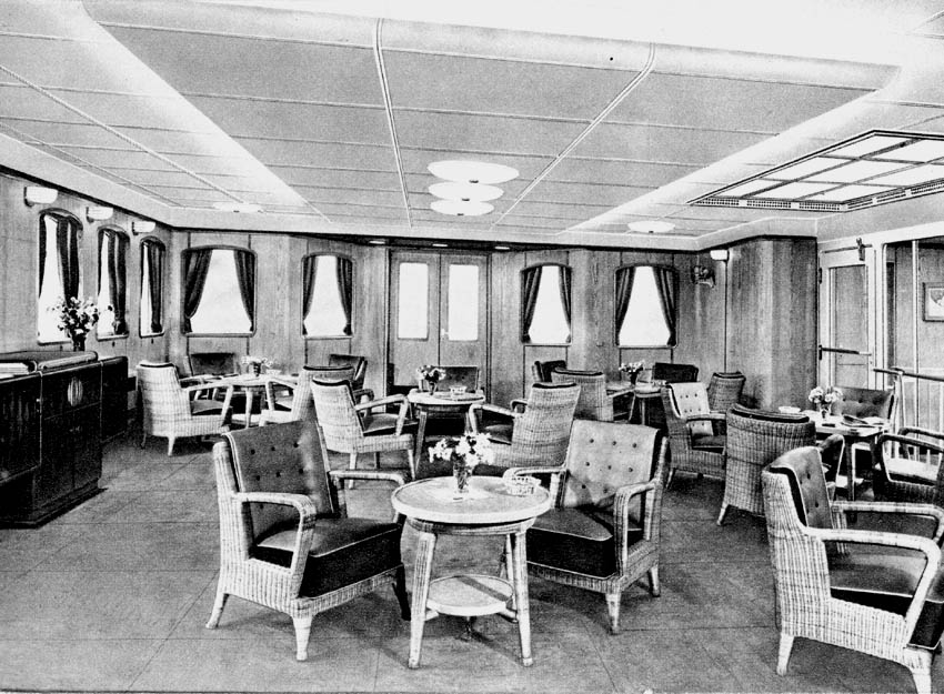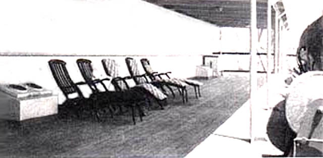 Aft was a Verandah Deck offering views over the ships aft decks, as well along the sides there were short narrow side decks available.
