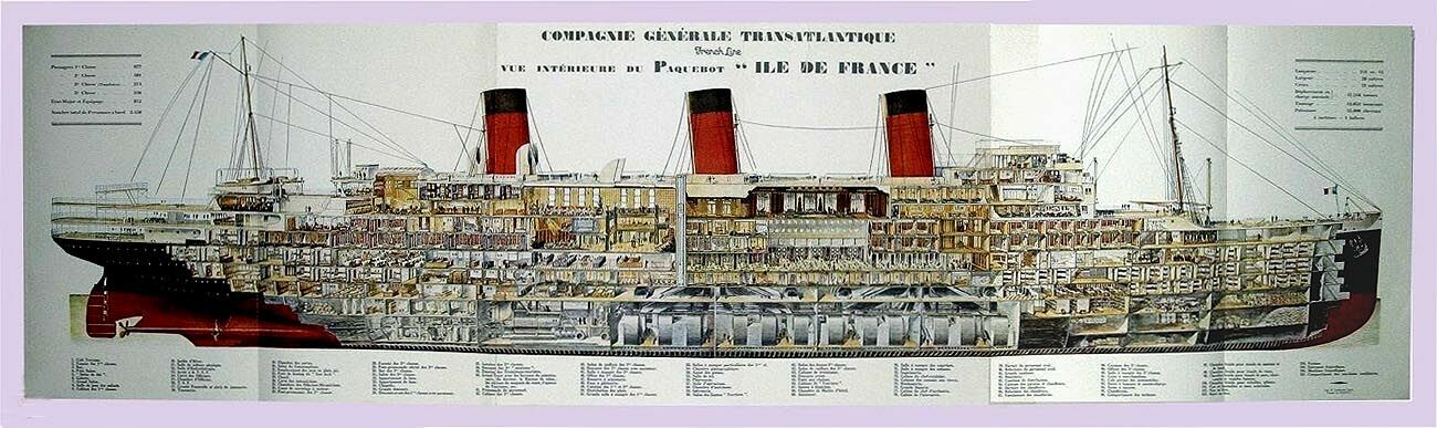 It would be the first time that a passenger ship’s accommodations would not be designed on a theme of the past but more of what was taking place in the present. In the book “The Only Way to Cross”, Jon Maxtone-Graham calls the “Île de France” - “the divide from which point ocean liner decorators reached forward rather than going back.”