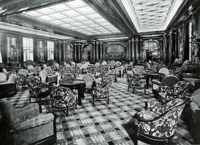 “Île de France” was given an interior that was very different to any ship before her, as it had been decided that she would be featuring a new type décor, known as the “Art Deco” style. This certainly turned out to be a great move by the “French Line” for the ship became a massive success and beside her massive popularity, she would influence interior design for other ships for the next decade.