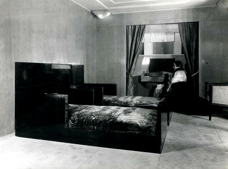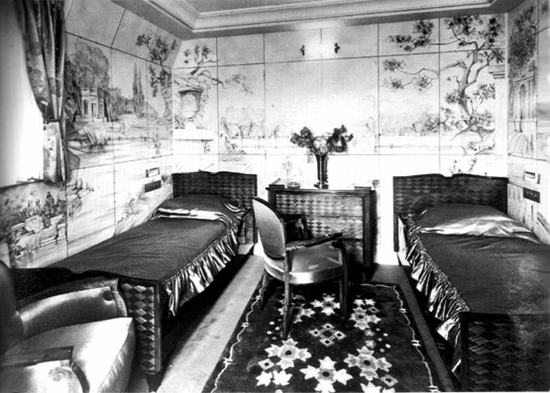 Throughout the ship the most luxurious materials were used as Suites were all decorated by ‘Marc Simon’ and they featured *palissandre, lemonwood and white maple walls and palissandre furniture, upholstered in lush dark velvets.