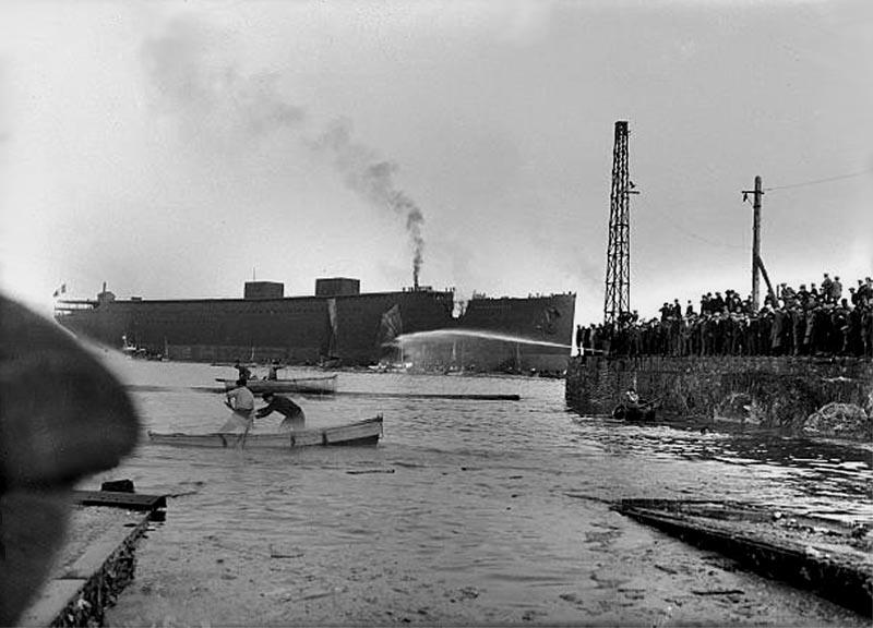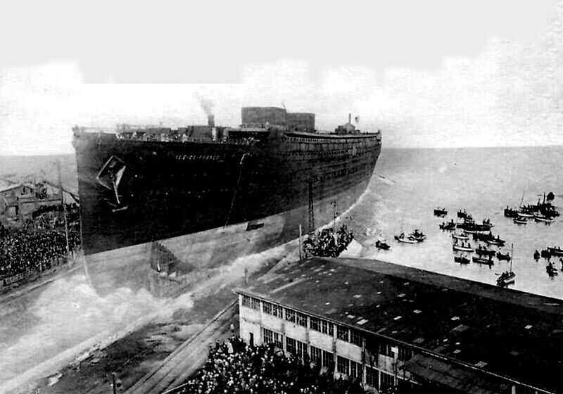 As soon as the “Île de France” had entered the water she was taken under tow and was taken to the builder’s fit-out berth, where she was completed, with her construction costing a total of US$10,000,000.