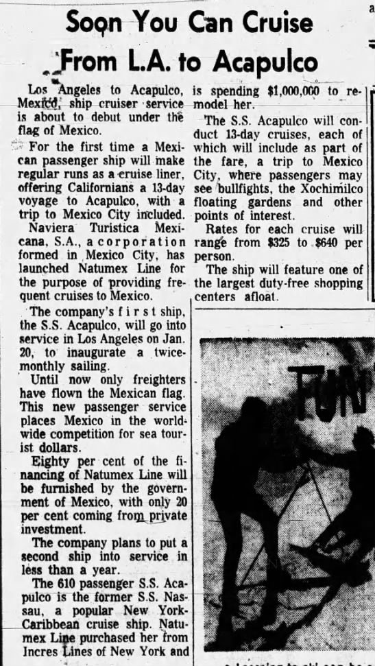 The ship was purchased in 1961 by Natumex Line (Compania Navegacion Turística Mexicana SA), a Mexican government-owned company, to