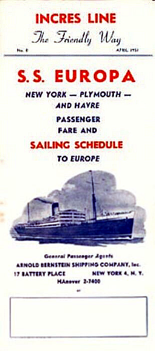 S.S. Europa continued her migrant duties until the end of September, 1951, but Incres decided to sell her in-house to “Incres Nassau Line” (or just the “Incres Line”).”