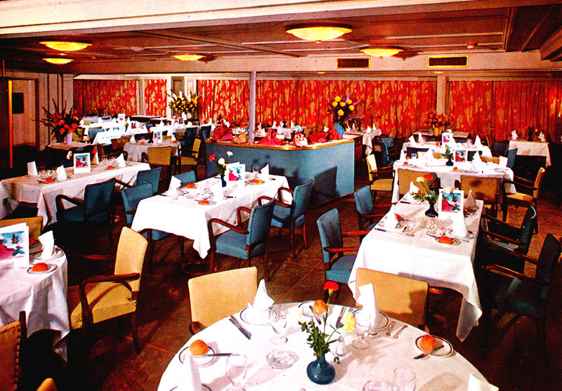 S.S. Nassau offered her guests six passenger decks, and wide range of a vast variety of fine public venues, which were all located on Upper Promenade Deck, except for the Grand Dining Saloon which was located below the Promenade Deck, on A Deck with entrance doors at the forward Entrance Lobby.