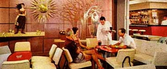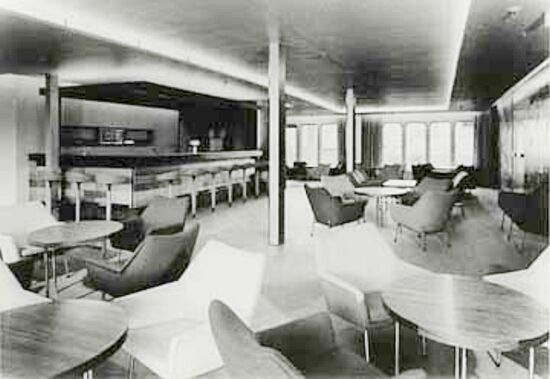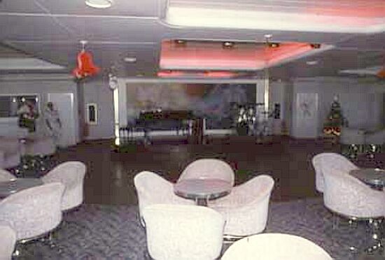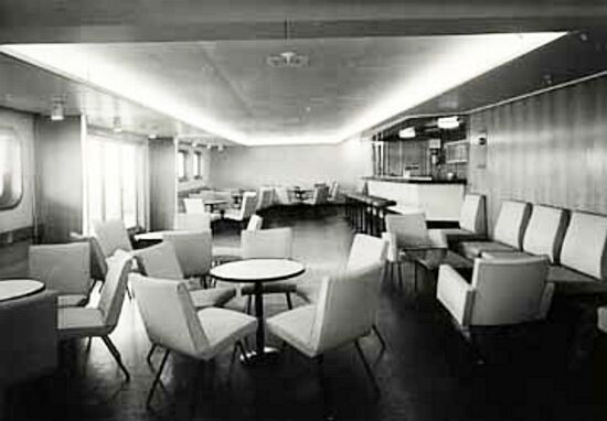 The décor was very much of the late modernistic fifties, with a great deal of steel and glass, with pastel colours combined with stark dark tones. Flooring had gone mostly to vinyl and timber wall cladding was only used in moderation. Yet, she had a unique look and the Infante Dom Henrique became a popular ship with both her First and Tourist Class passengers.