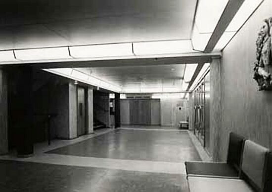 forward Lobby and stairwell with the surviving statute of Infante