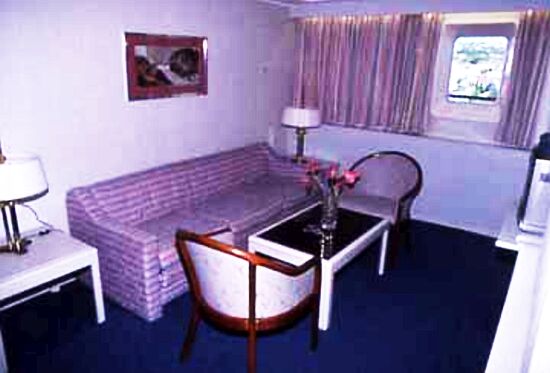 In addition, instead of carrying three or four classed she only offered two classes, First and Tourist. Although they there was a Tourist Class A, and Tourist Class B. This that Tourist A offered a cabin amidships, whereas Tourist B was a cabin aft of the ship. Her First Class was referred to as the “Penthouse” covering, Games, Boat, A (Prom) and B Decks 4 Decks). But First Class staterooms were located on just two decks, whereas Tourist Class cabins were spread over three decks, but two lower ones covering almost the full length of the ship.