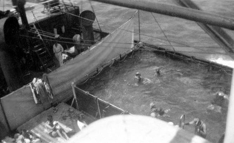 During the remainder of the war, the “Jan Pieterszoon Coen” sank deeper into the sea and her upper decks were severely damaged and deteriorated by the strong waves that constantly pounded the ship. The funnels and some decks had also collapsed during this period.