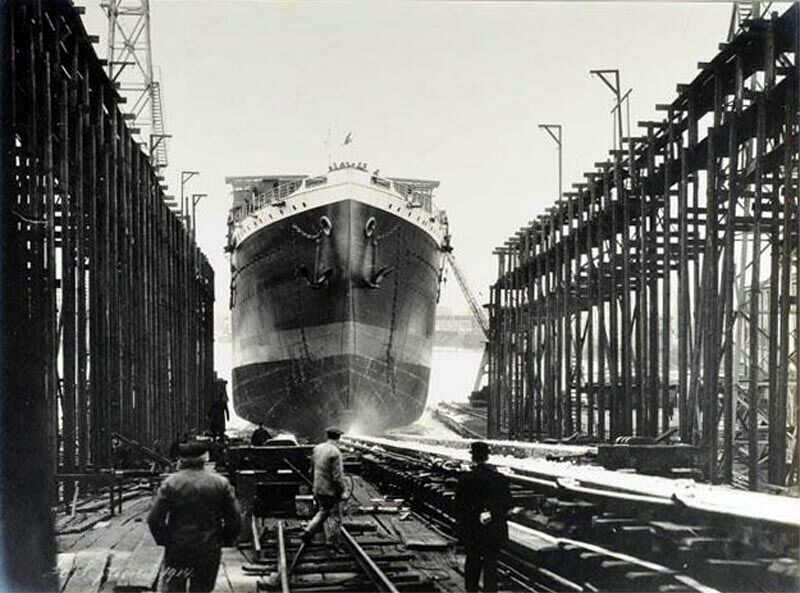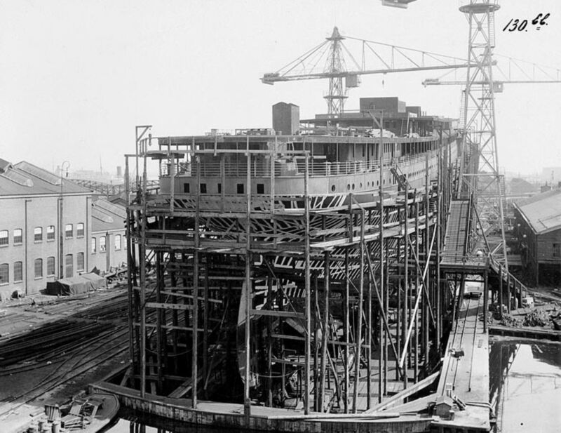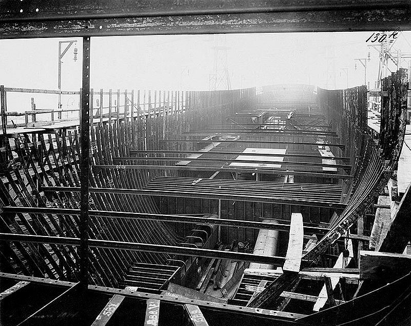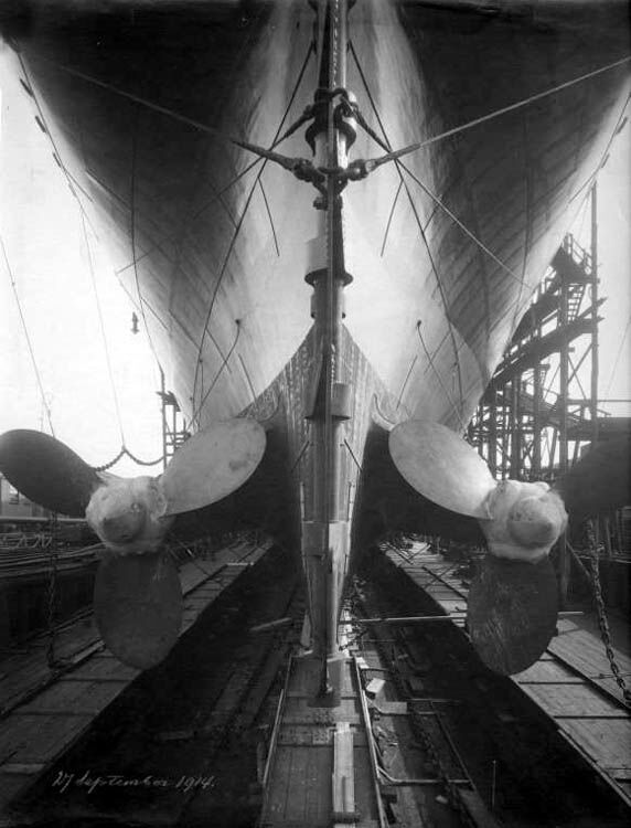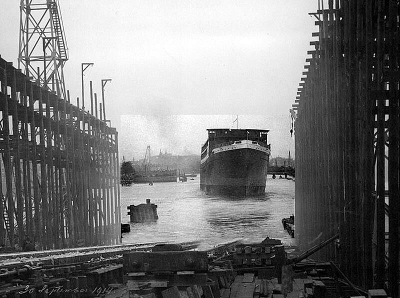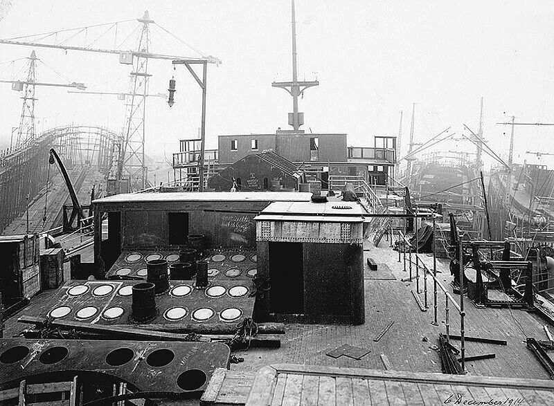 Above & below: Her rudder and props are on September, 27 1914, in three days she will be launched