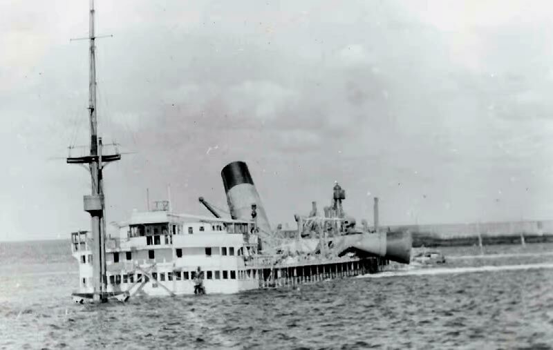 As a solution to the problem, the Royal Netherlands Navy ordered the tugboat “Atjeh” and an old minesweeper to tow the JPC into place. They towed her into location, but it was done with a considerable deal of difficulty being due to the tide. The ship was positioned her bow 10 meters from the South Pier and her aft side 50 meters from the North Pier. When she was in position than 3 explosives which had been previously placed on board were detonated and as planed she sank between the piers, with her upper decks remaining just above the water due to the shallow depths.