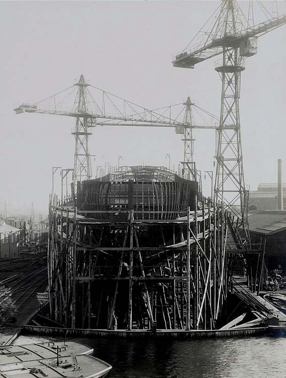 She is seen here with her hull partially built