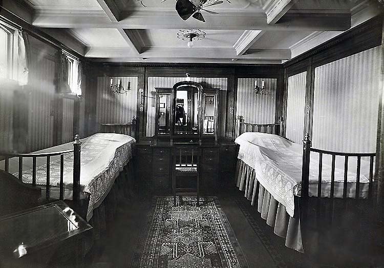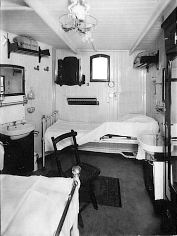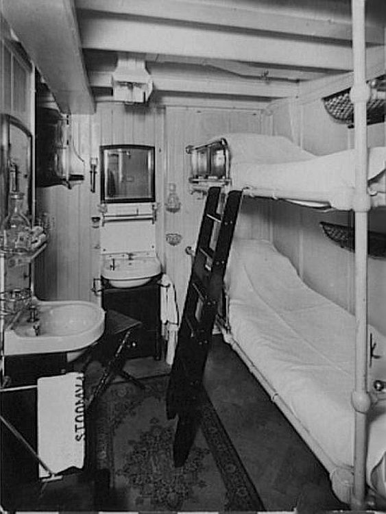 Her First Class featured the most luxurious interiors having been completely designed by “Lion Cachet”, and his design for both First and Second Class was simply exceptional! Obviously Third Class was more modest, but certainly very comfortable. Steerage passengers were berthed in larger cabins forward on a lower deck, but there was several cabins just for families with small children. She accommodated 188 First Class, 120 Second Class, 36 Third Class with 42 passengers in Steerage.