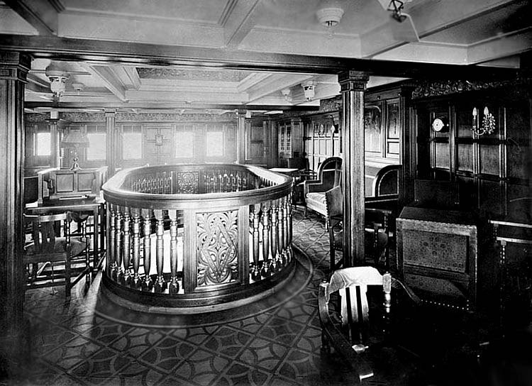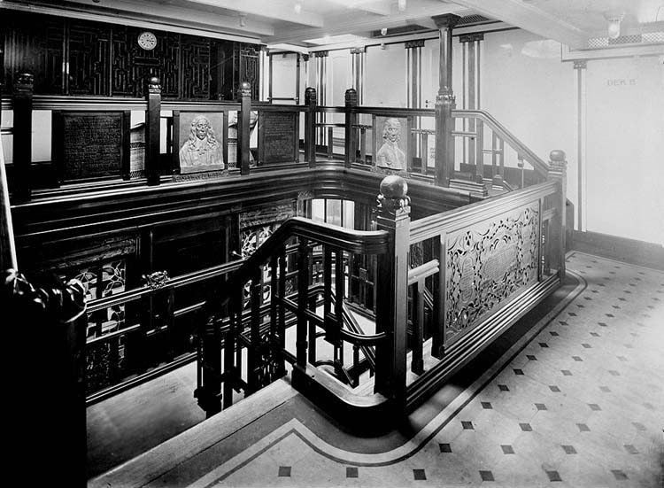 The Main Stairwell seen on B Deck, note the decorative feature