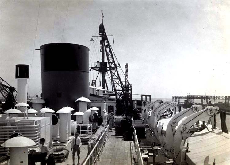 ten watertight bulkheads, and her foremast had four loading booms of 6 tons and