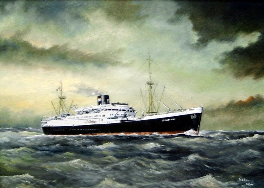 A fine painting of the MS Boissevain in her new 1961 Royal Interocean Lines (RIL) livery
