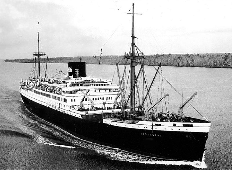 Part One contains the history and has a multitude of photographs of the MS Boissevain, Tegelberg, and the Ruys. This trio of sister ships are covered from their construction in 1937/38 to their early wartime voyages until they were commissioned to become troop transport ships in 1942, which covers Part two. This second part covers the trio’s partial wartime activities, and their restoration in 1947 to their owners and the ships refit. But then in 1961/62 all three ships receive a massive refit and their exteriors receive the full Royal Interocean Lines livery, and they looked magnificent!