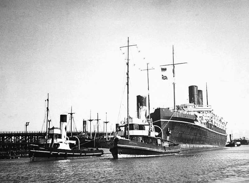 this final photograph of a great ship, we see her being prepared to depart for