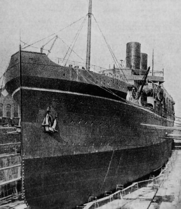 Her keel was soon laid down in Yard number 327, but amazingly, she remained a ship without a name although it was thought by many that she would be named “Taj Mahal,” but that was not to be! As her hull and part of her superstructure had been completed, she was launched on June 28, 1914 by a Miss Edith Cole yet she remained without a name, thus the unnamed ship was taken to her fit-out berth for completion.