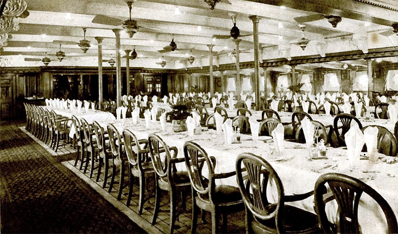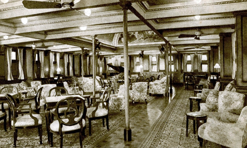 However, and there is no doubts about it her interiors were the complete opposite to her externals, for she had some of had some the most beautiful and luxurious Lounges, Dinning Rooms and Accommodations for her 548 passengers, who were accommodated as follows: 315 passengers in First Class and 233 passengers in Second Class. One of the new features of the day were all those most welcome electric fans that were fitted in the public venues and all suites, luxury staterooms, and cabins on board regardless of class and passenger or crew, which made sailing on those hot steamy days and nights so much more bearable!