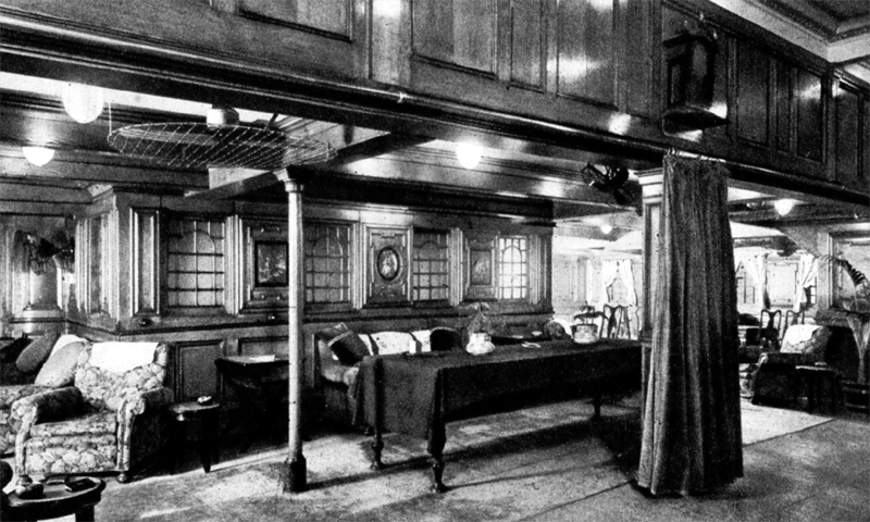 First Class featured some elegant lounges having beautifully timbered clad walls with high arched ceilings that went up into the deck above in several venues. Below is a photo gallery of her wonderful facilities and for her days, they were rather special for what was considered a small liner.