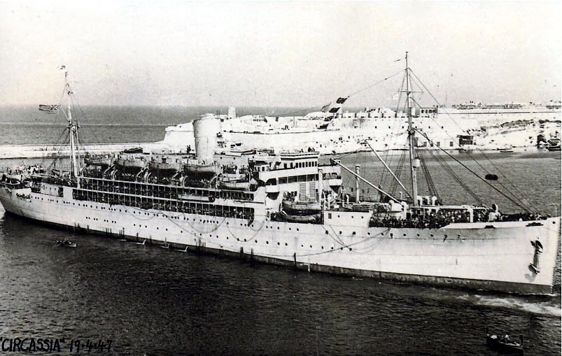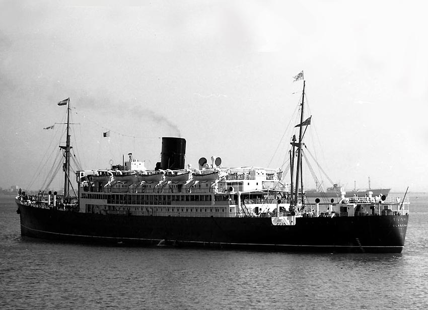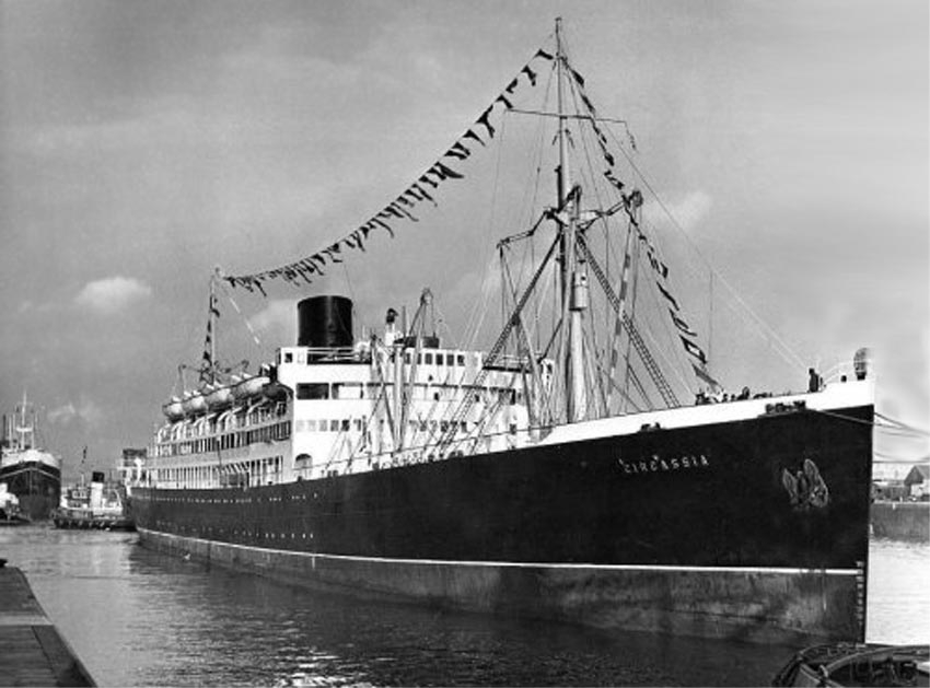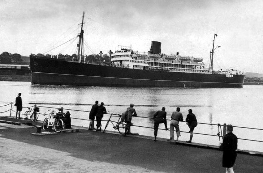The RMS Circassia is seen returning from her sea trials in October 1937
