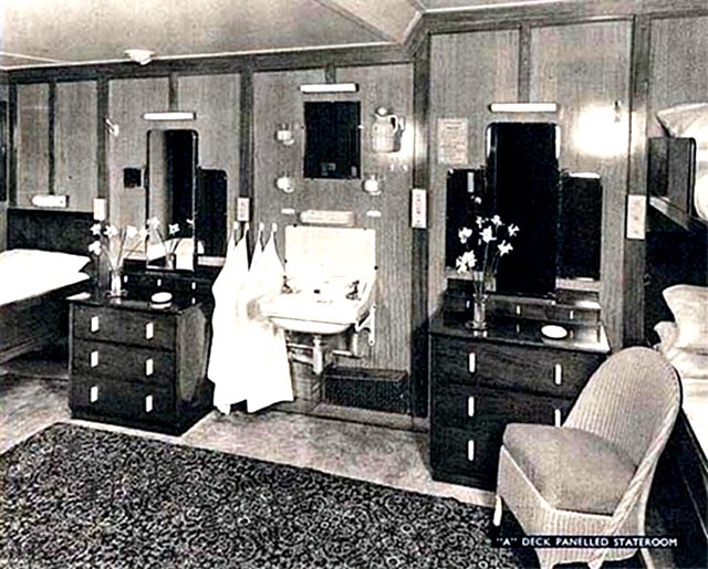 Here we see one of the Deluxe panelled Staterooms on A deck