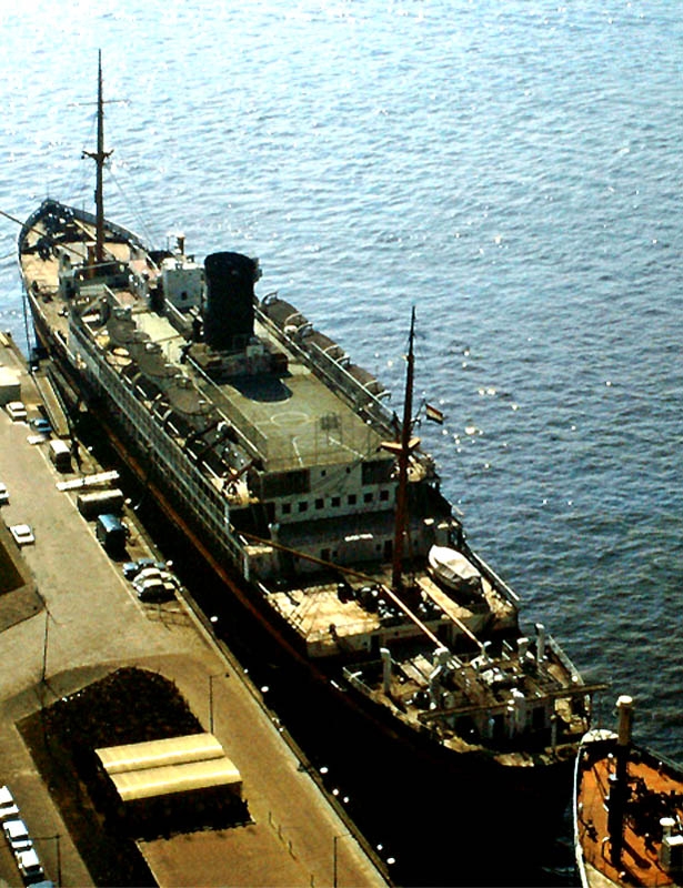 student hostel Caledonia, with new windows cut into her hull, is seen berthed