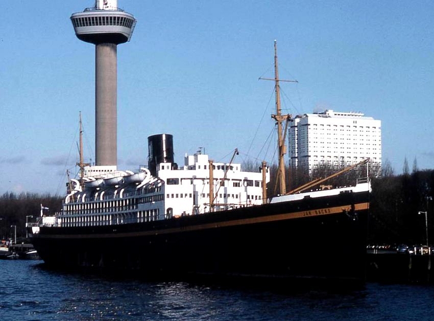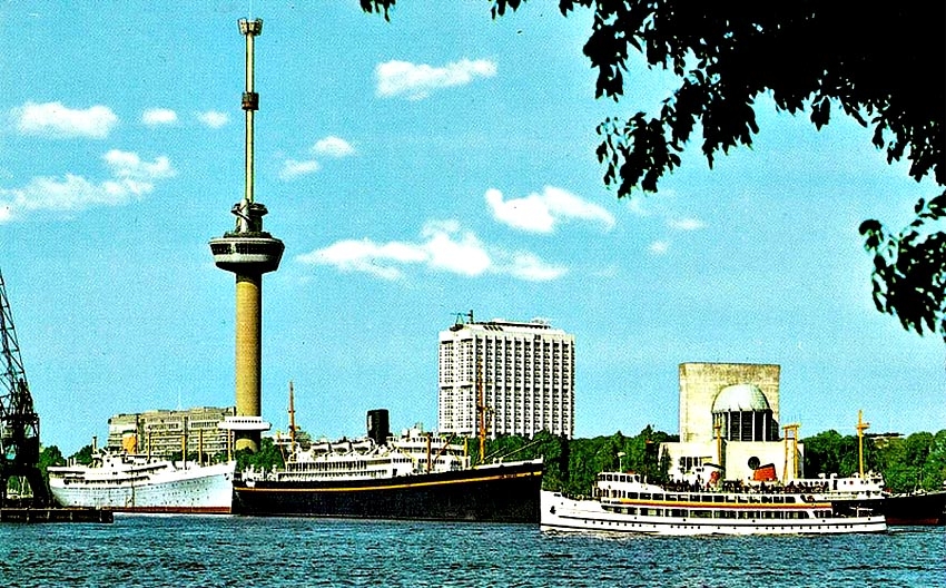 The Jan Backx is seen from high above as this photo was taken from the top of the Euromast in 1970