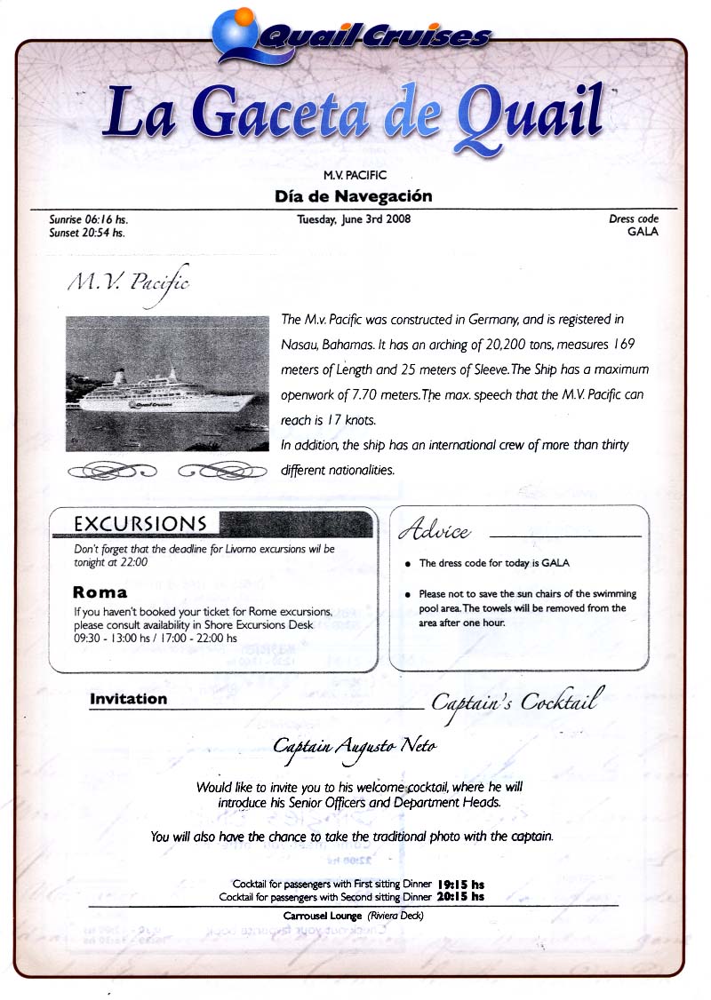 we would have a day relaxing at sea and the Captains Cocktail Party