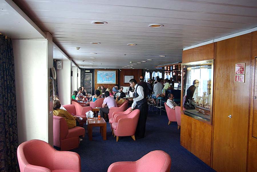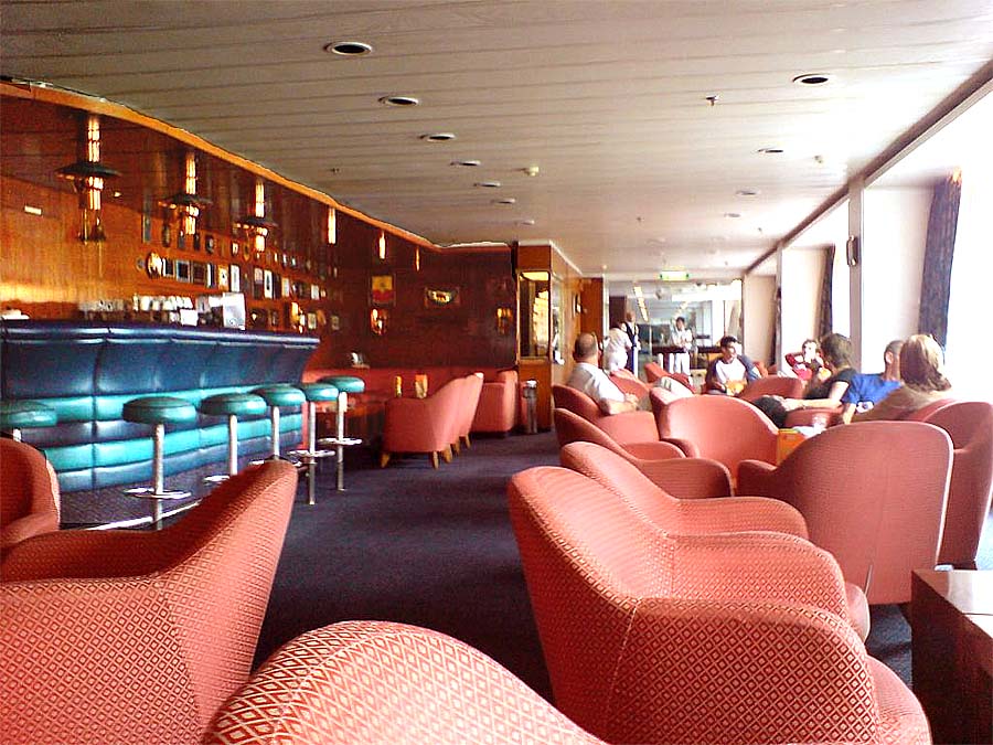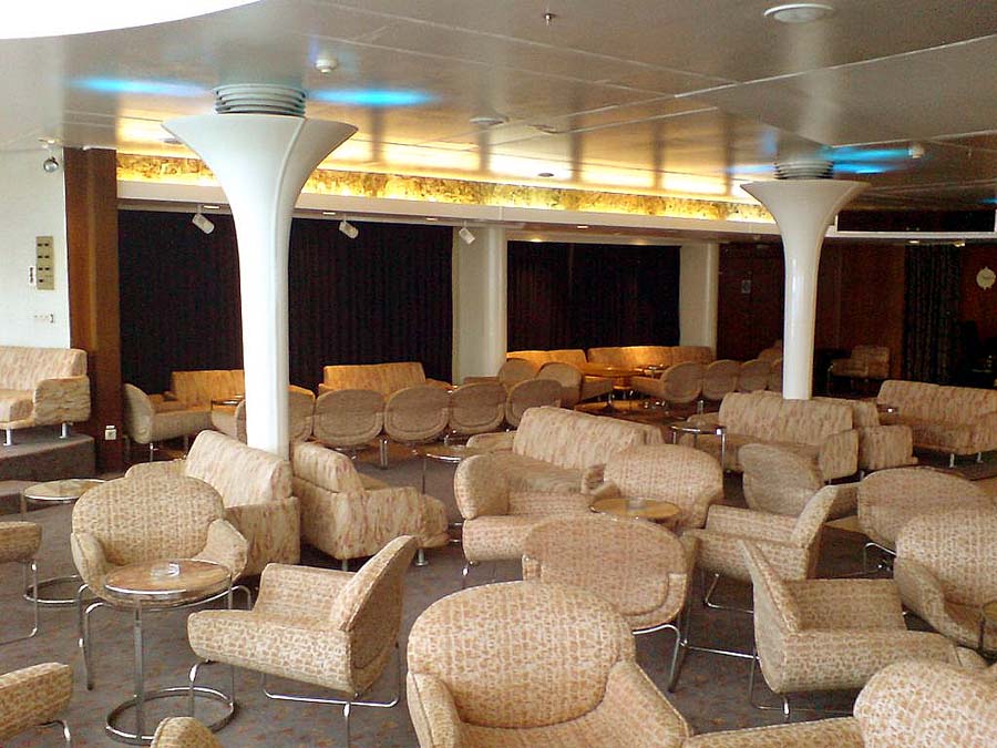 the photograph below looks aft into the grand two level Pacific Lounge and the