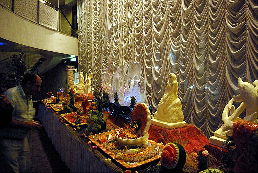 we see a midnight buffet held in the Pacific Lounge in front of the massive