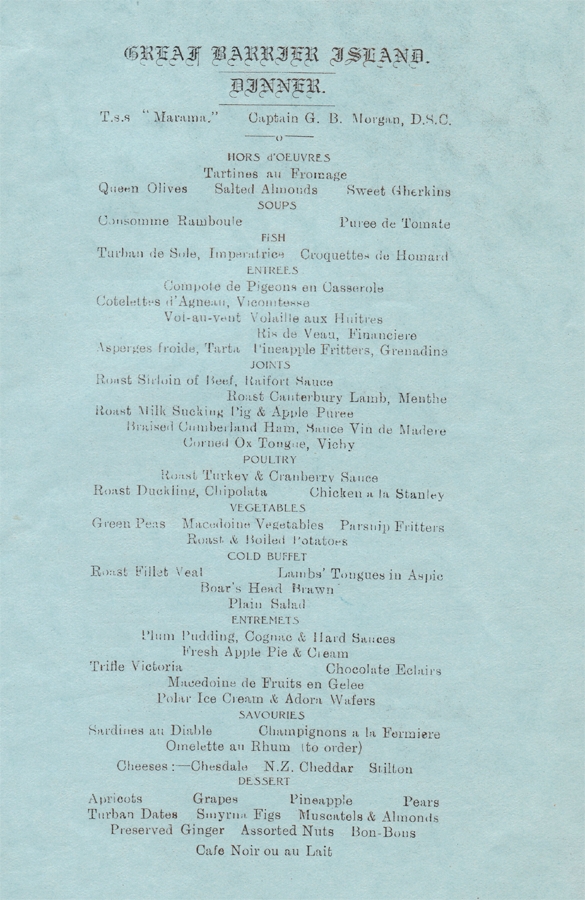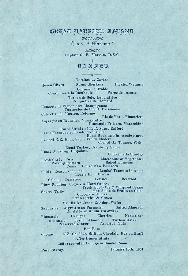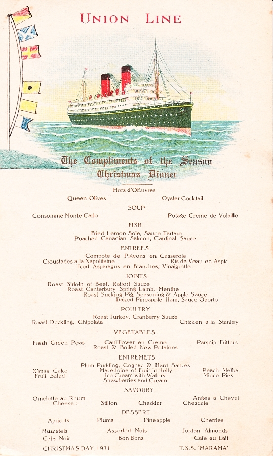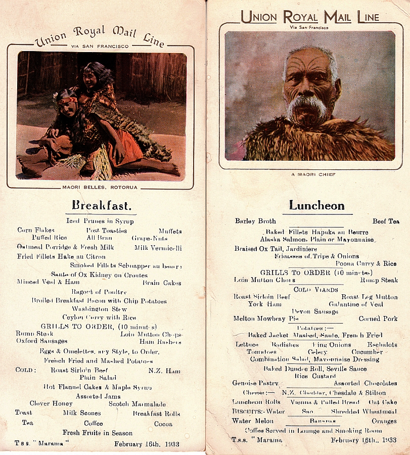 delightful series of SS Marama menus and booklets and passenger Lists dating