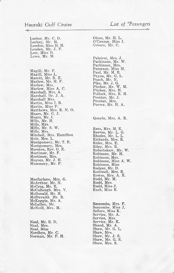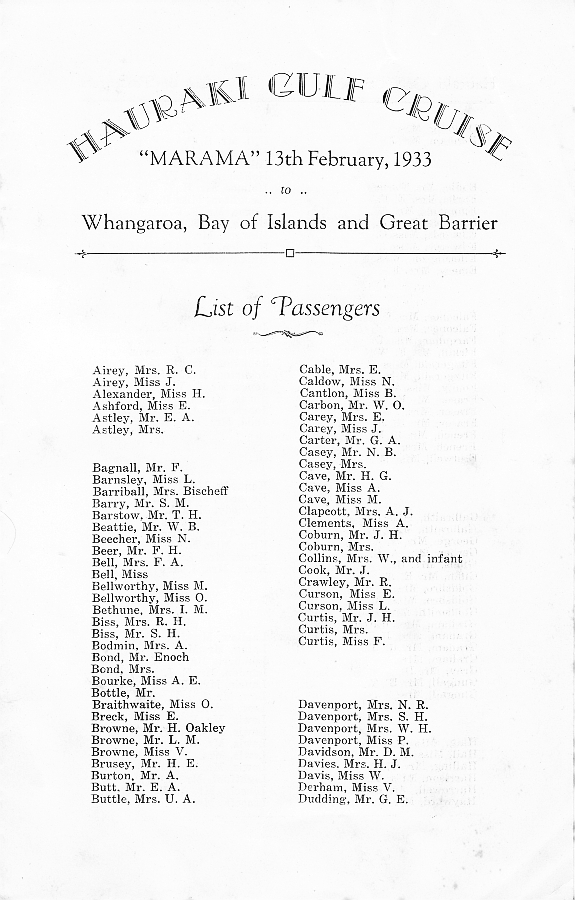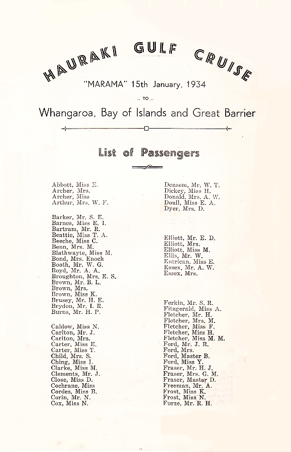 Hauraki February 15, 1934 Gulf Cruise booklet
