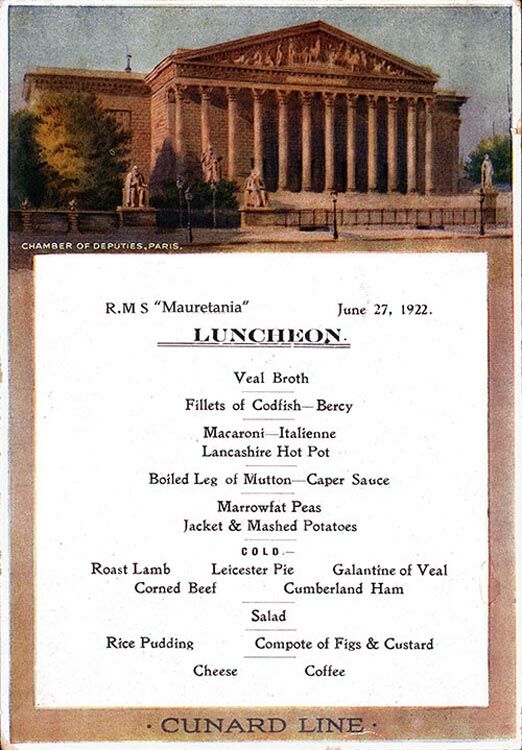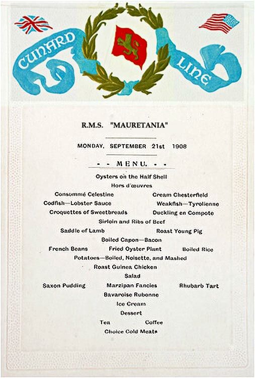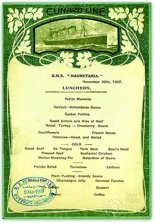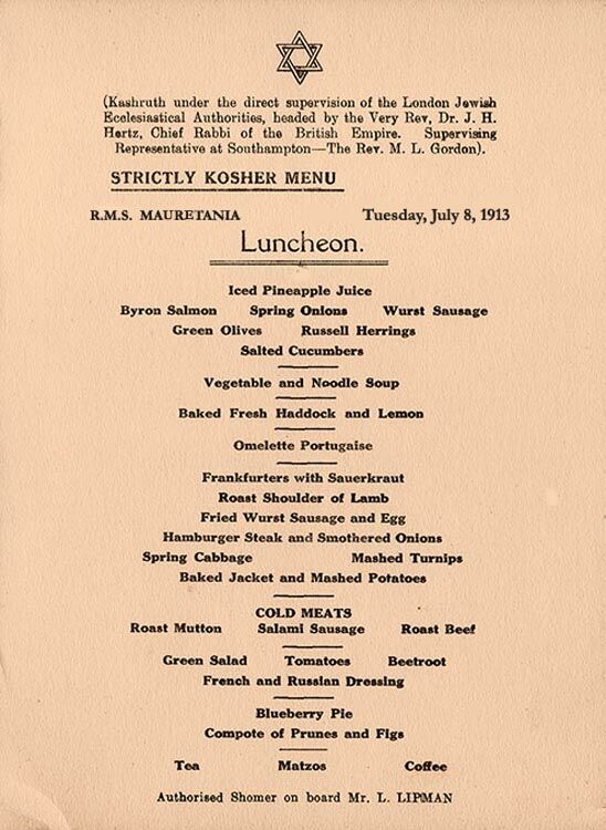 For Jewish passengers, a Kosher Menu for July 8, 1913