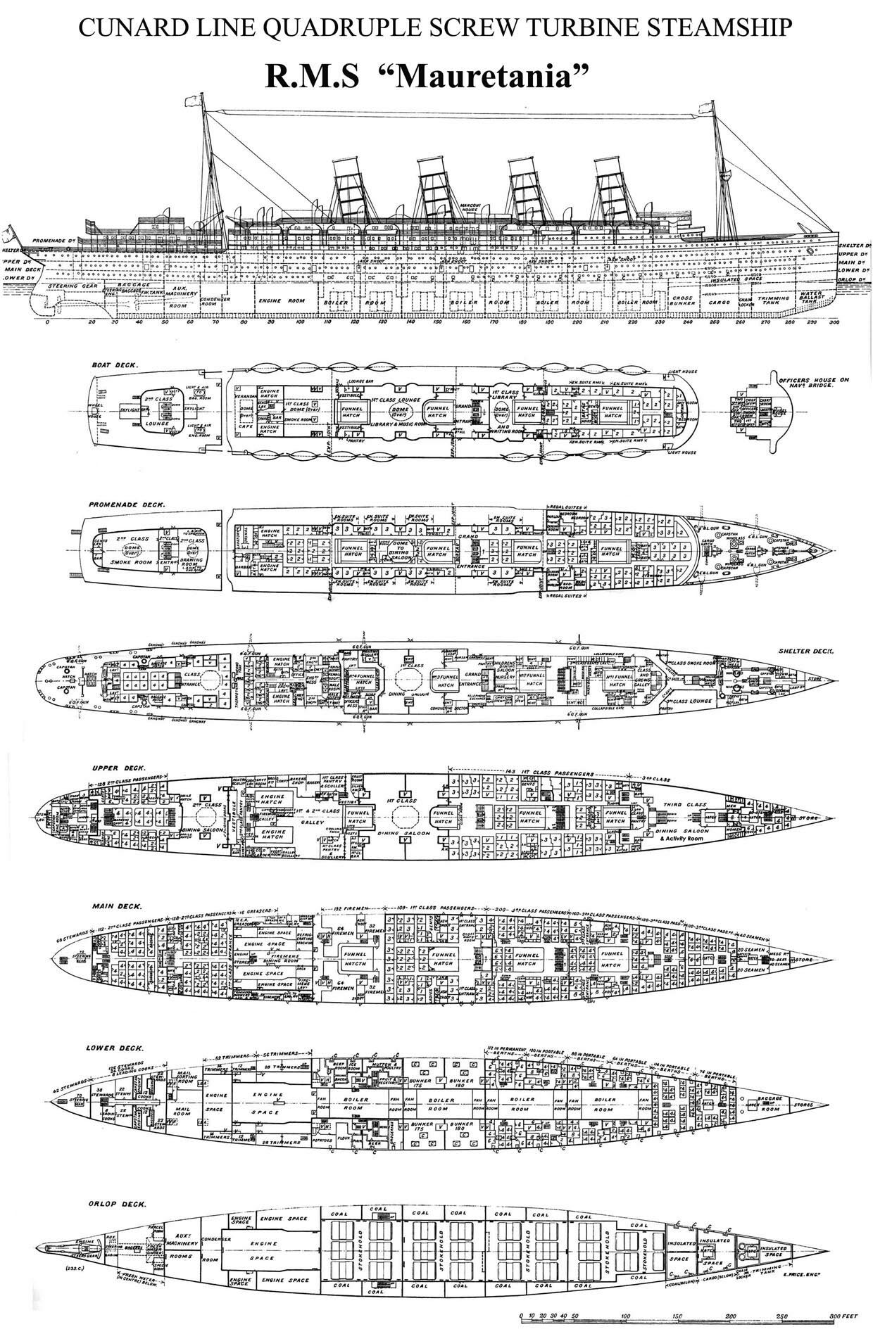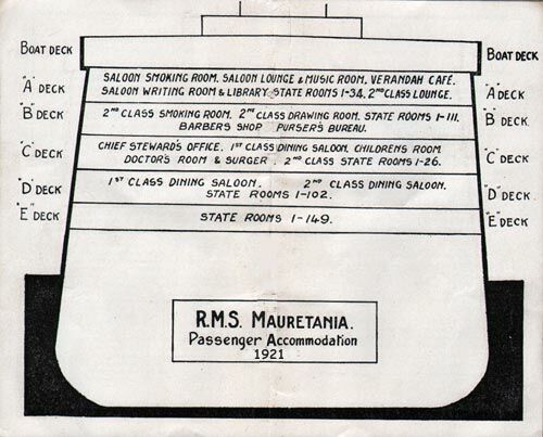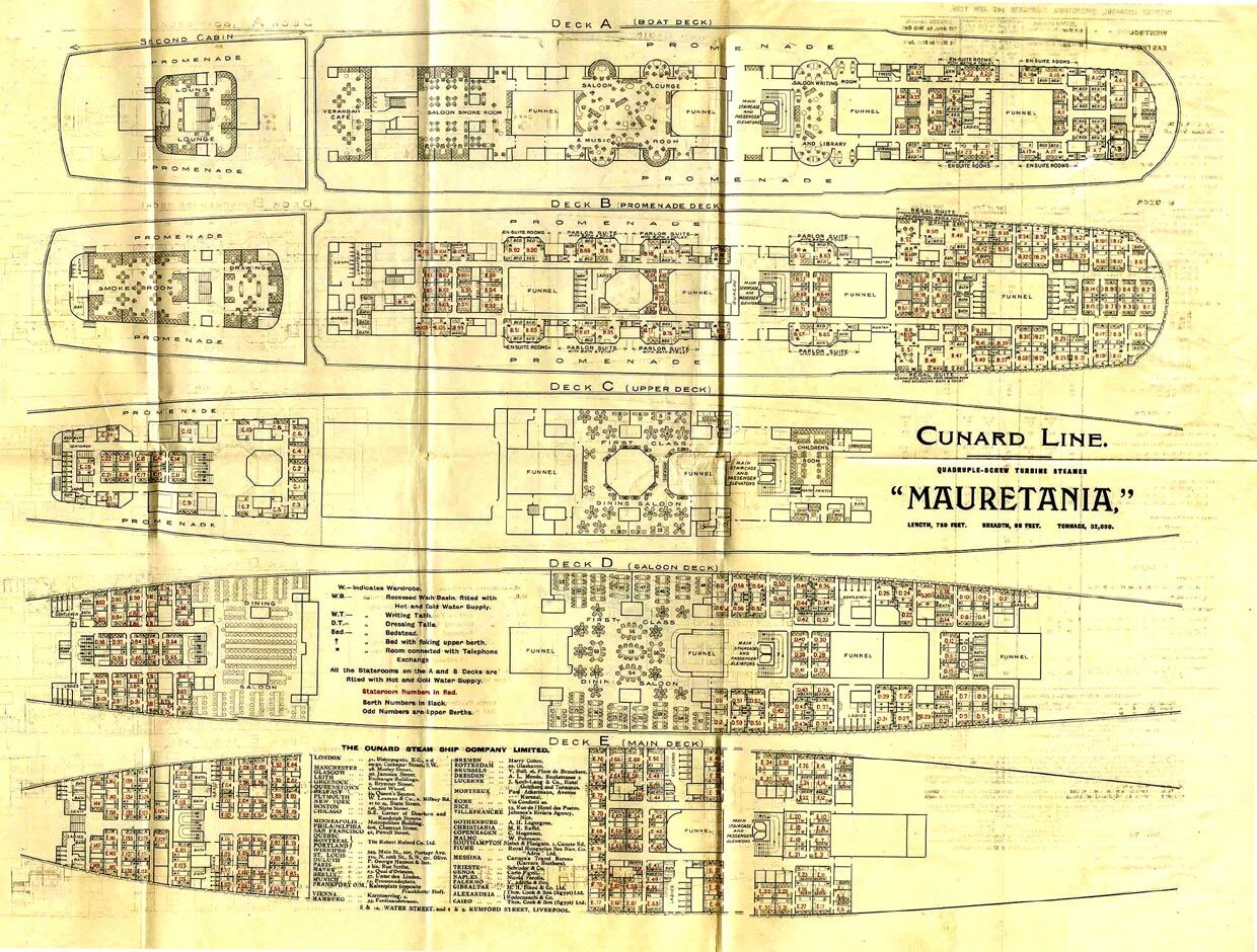 R.M.S. Mauretania (1) … Page Three Deck Plans and other items (This page).