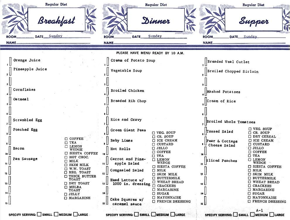 For interest, lunch was usually a full hot cooked meal thus not on this menu