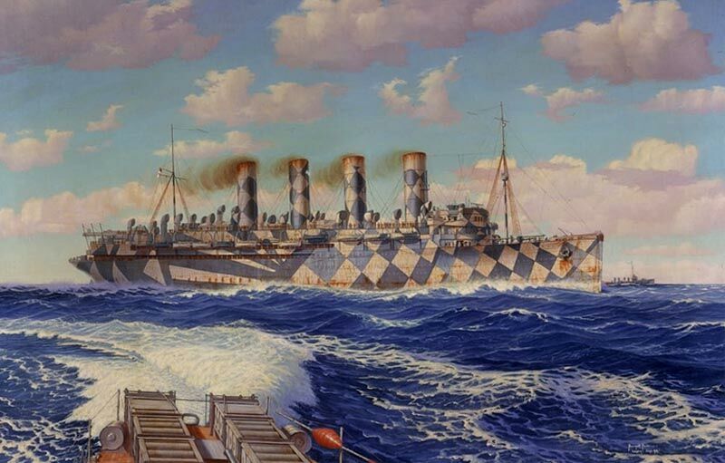 By tradition, the hull was painted in a light grey colour for photographic purposes during her launch; being a common practice of the day for the first ship in a new class, for it made the lines of the ship clearer for the black-and-white photographs.