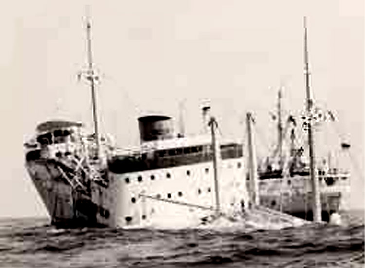 last day afloat for the MS Mongabarra, May 22, 1960 for she is about to go down